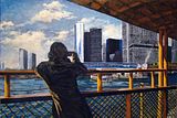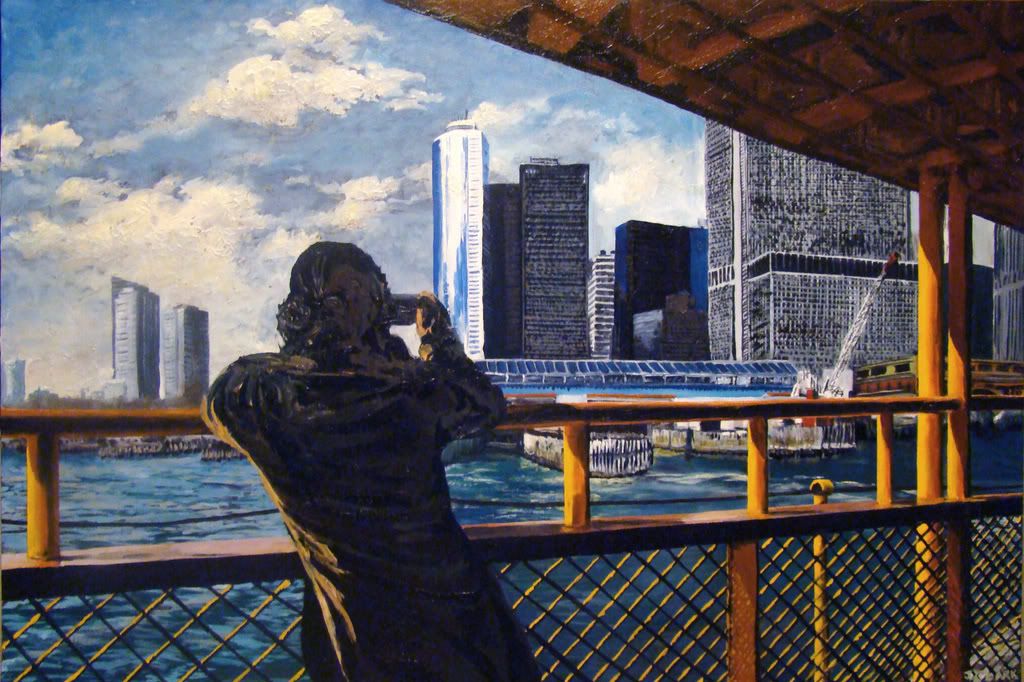"Taking Photographs on the Staten Island Ferry" 24"x36", oil