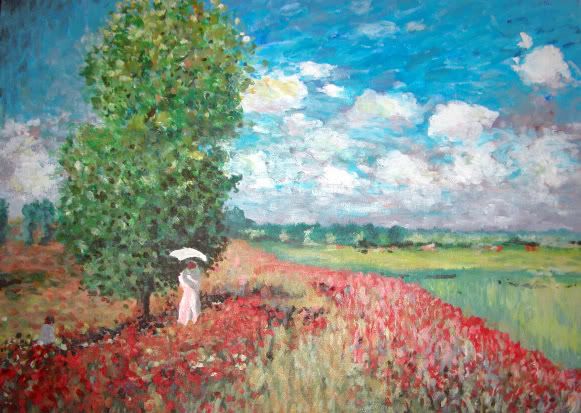 "Sunny Day, Field of Poppies" {after Claude Monet} 18"x24", acrylic, NFS