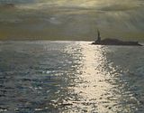"View from Staten Island Ferry, with Statue" 14"x18", oil