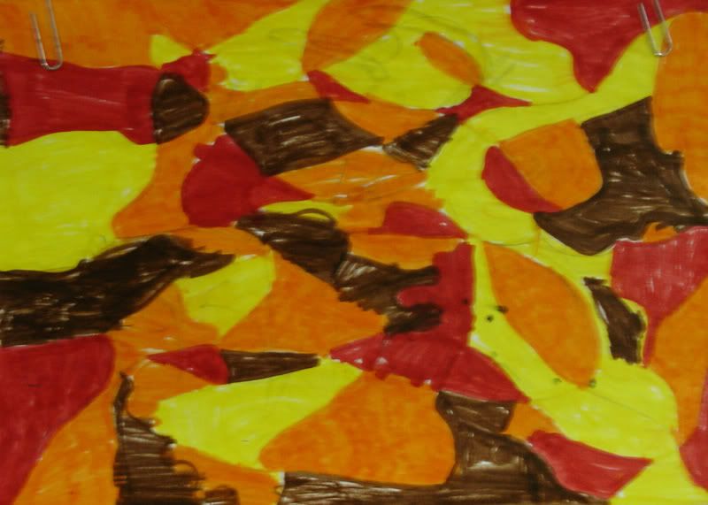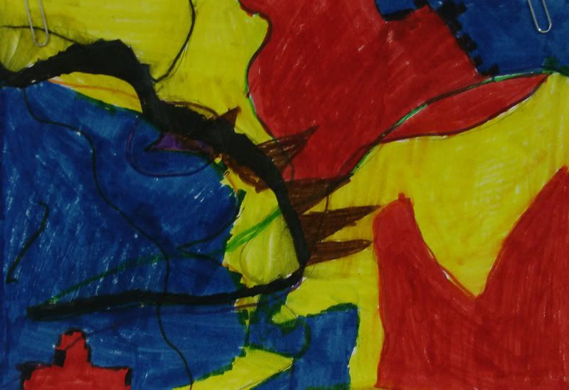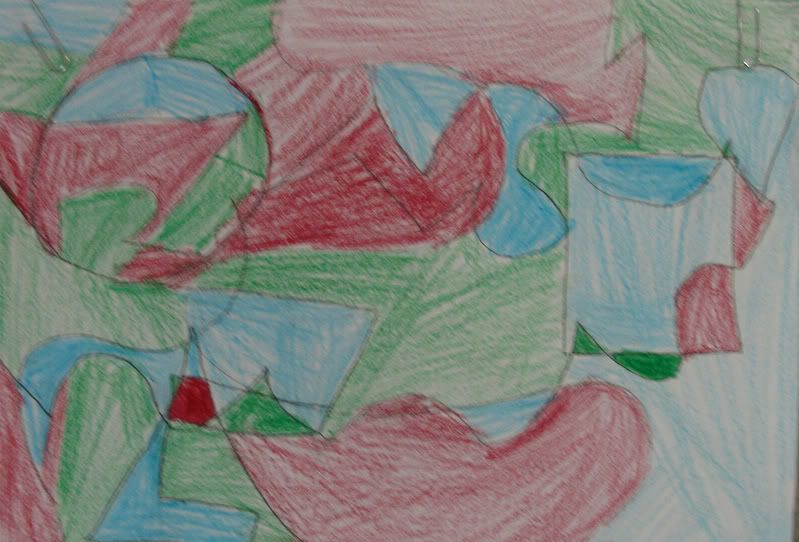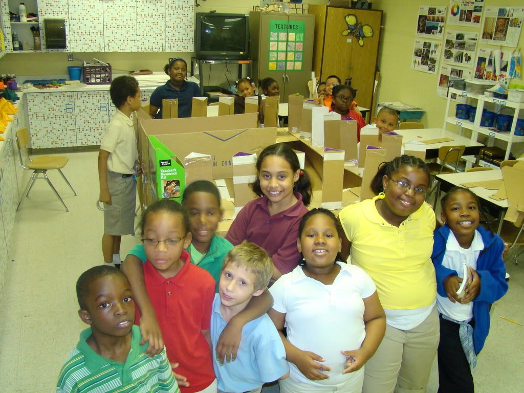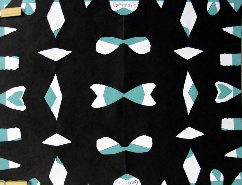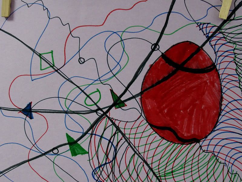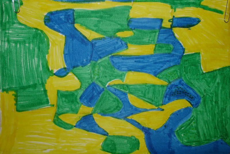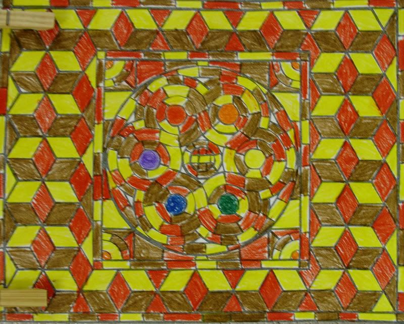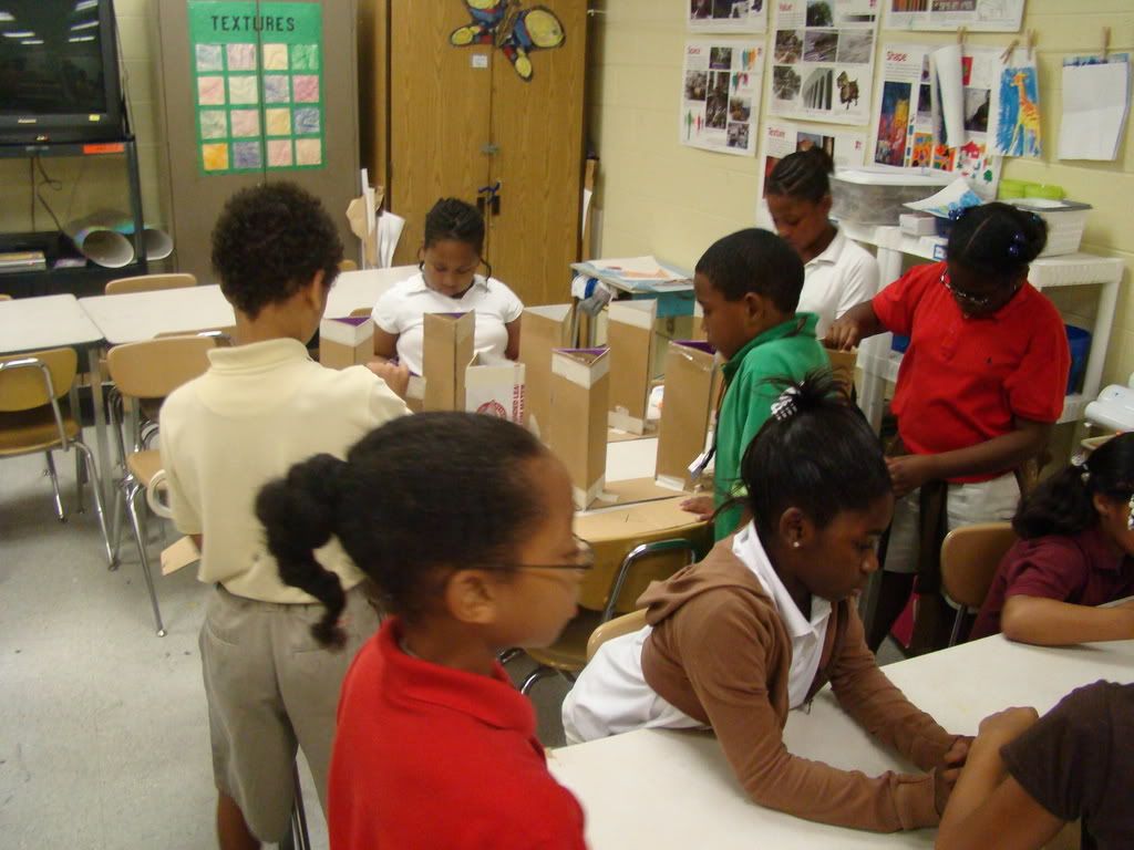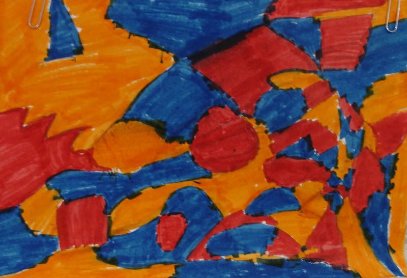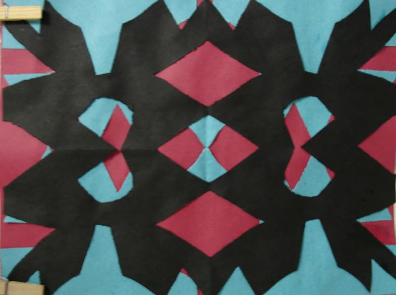Below are selected works from my K-4 students at Whitsitt, Glenn, and Stratton Elementary Schools. The first selection is from a large sculpture project we did at Glenn to help us learn how to build our own Parthenon model out of cardboard and paper. The second group is a color sheet lesson designed to teach pattern and proper color wheel usage. The third is from a positive-negative space lesson based on verbal directional cues, given by the teacher, and followed by the students. The fourth is from a symmetrical balance/positive space lesson featuring a simple snowflake construction technique. The fifth section is a verbal cue lesson based on contour line drawings.