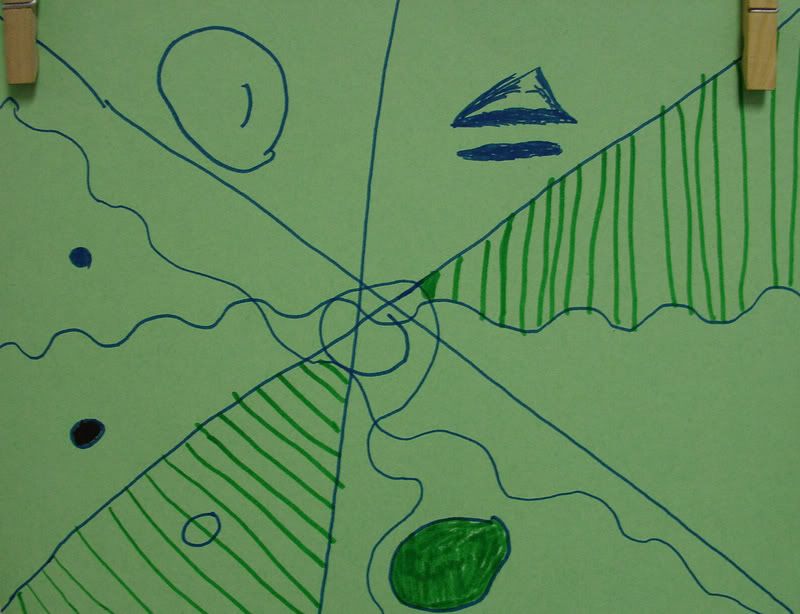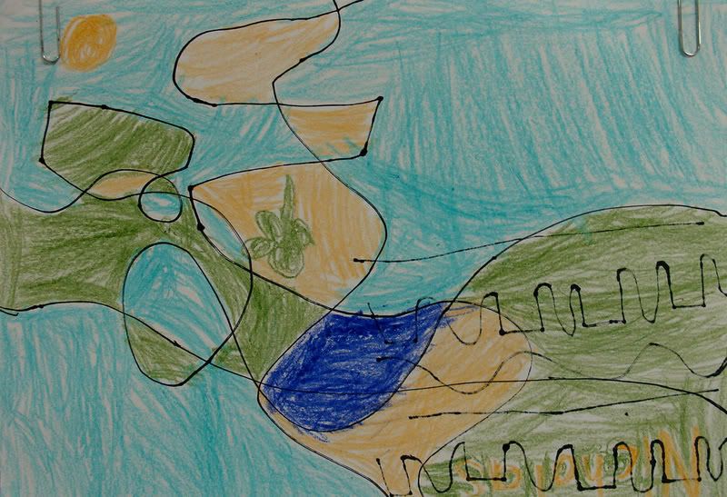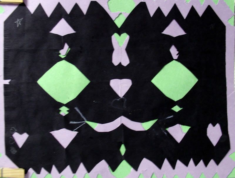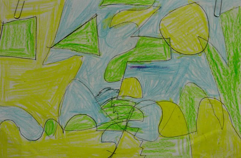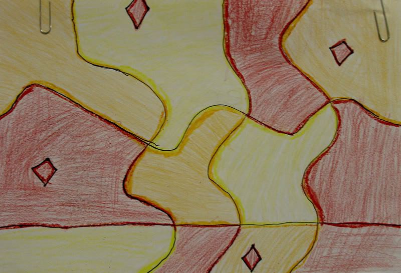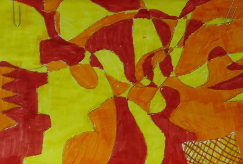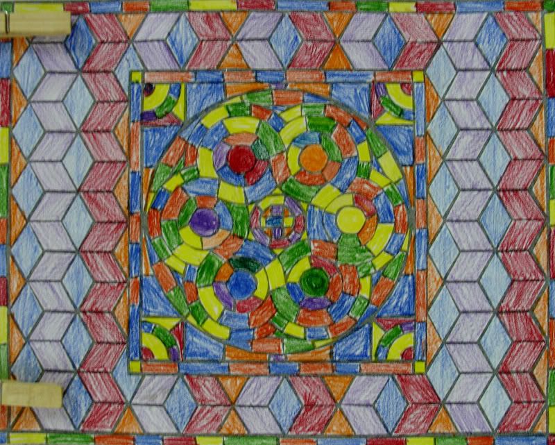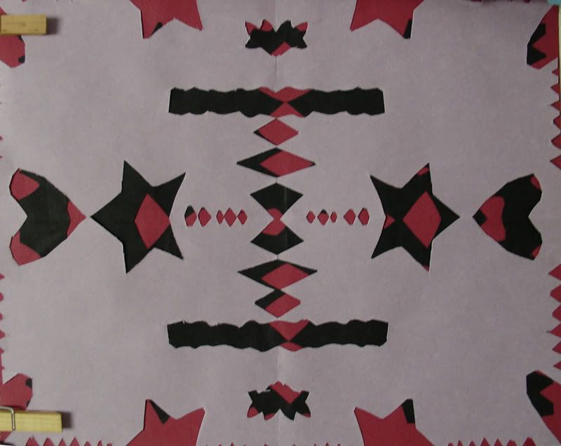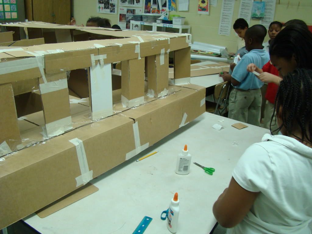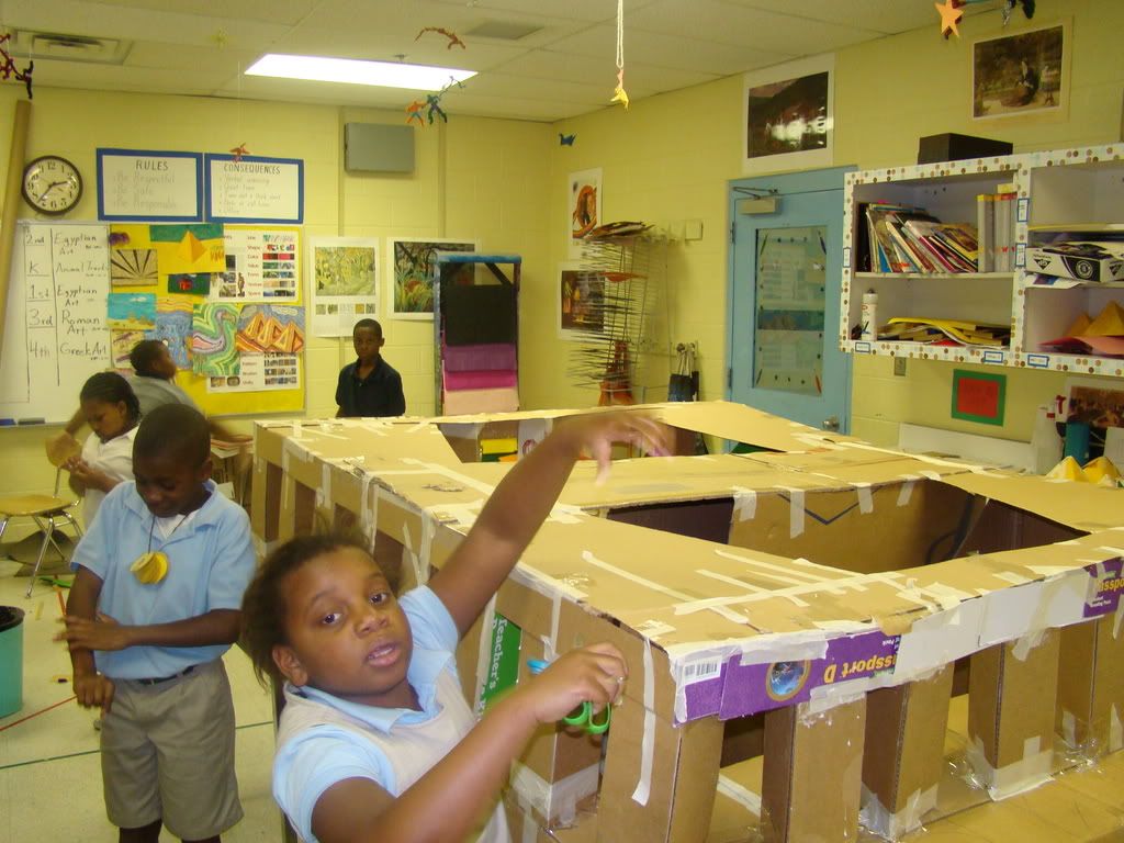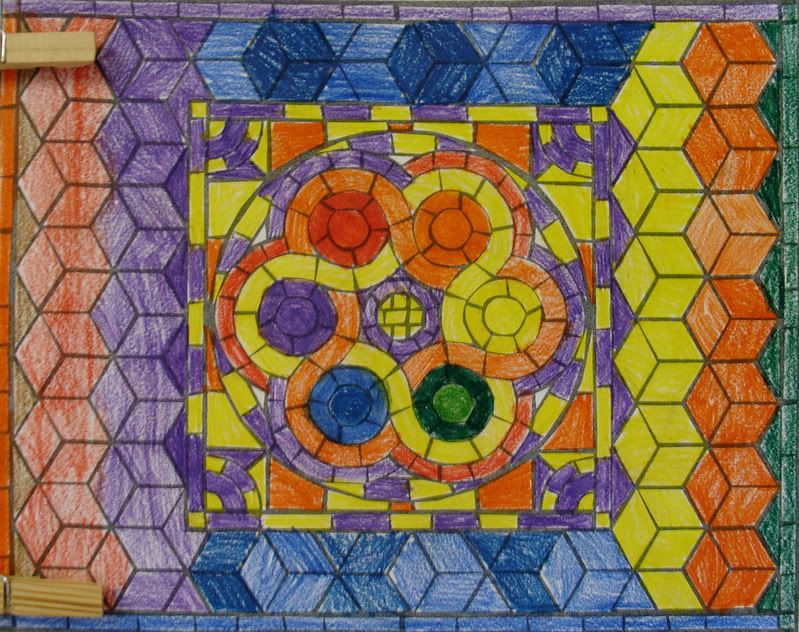 Below are selected works from my K-4 students at Whitsitt, Glenn, and Stratton Elementary Schools. The first selection is from a large sculpture project we did at Glenn to help us learn how to build our own Parthenon model out of cardboard and paper. The second group is a color sheet lesson designed to teach pattern and proper color wheel usage. The third is from a positive-negative space lesson based on verbal directional cues, given by the teacher, and followed by the students. The fourth is from a symmetrical balance/positive space lesson featuring a simple snowflake construction technique. The fifth section is a verbal cue lesson based on contour line drawings.