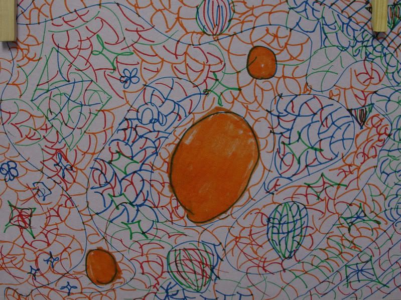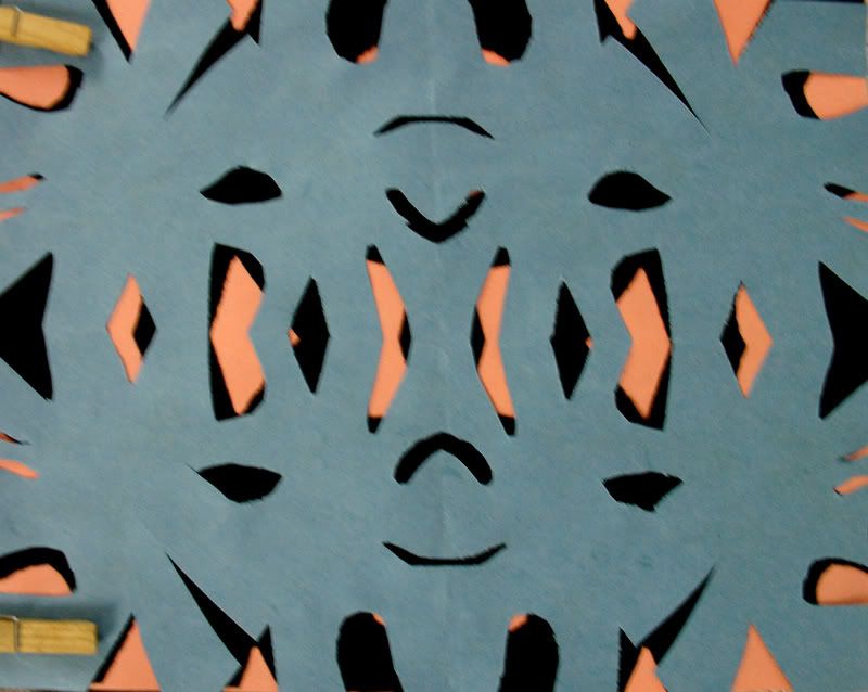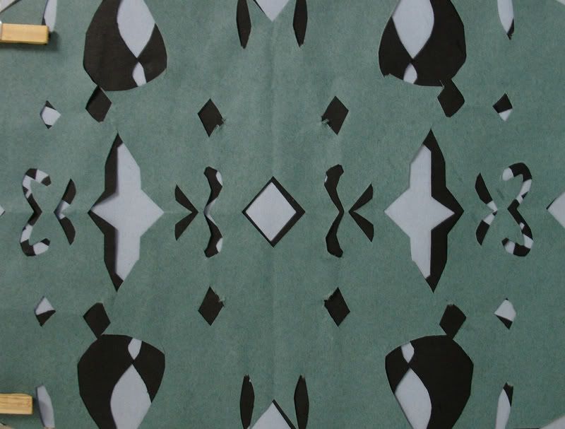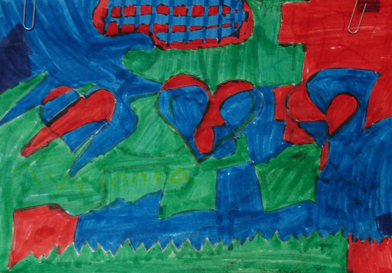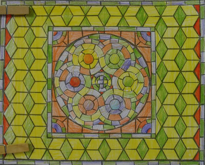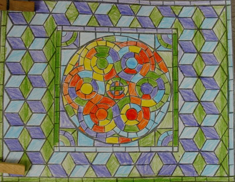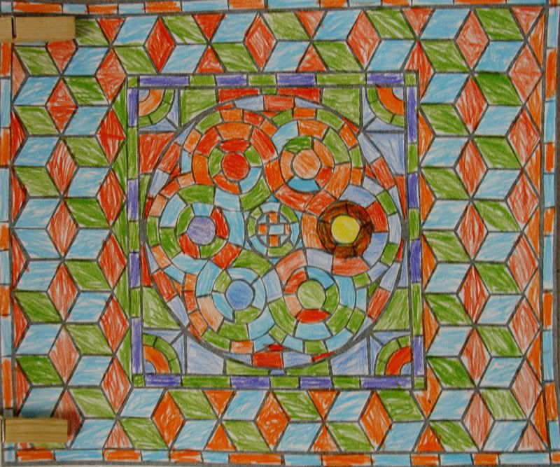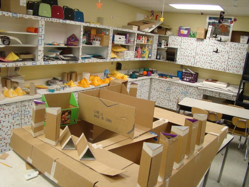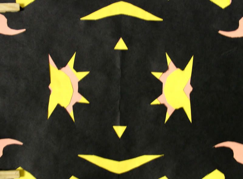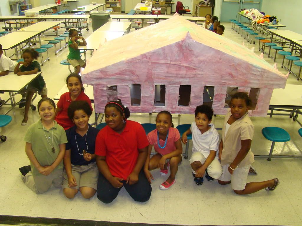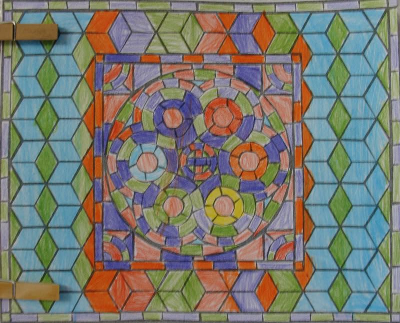 Below are selected works from my K-4 students at Whitsitt, Glenn, and Stratton Elementary Schools. The first selection is from a large sculpture project we did at Glenn to help us learn how to build our own Parthenon model out of cardboard and paper. The second group is a color sheet lesson designed to teach pattern and proper color wheel usage. The third is from a positive-negative space lesson based on verbal directional cues, given by the teacher, and followed by the students. The fourth is from a symmetrical balance/positive space lesson featuring a simple snowflake construction technique. The fifth section is a verbal cue lesson based on contour line drawings.