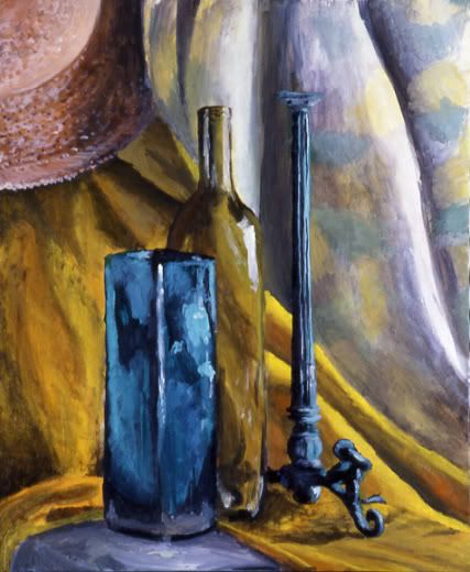 "Bottles and Candlestick" 20"x24", acrylic, NFS